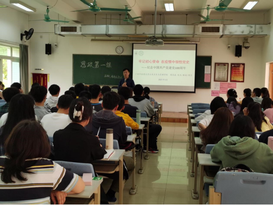 3月16日上午,林海星书记为2019级国际经济与贸易专业员工讲授思政课。林书记以《明理、增信、崇德、力行》为主题展开思政课。林书记梳理了党的历史脉络,回顾一百年的奋斗历程,阐述了理论创新、以人民为中心是贯穿党的百年历史两个关键词。他回顾遵义会议、十一届三中全会等党的历史上的重要会议和重要决议,阐述作风建设和反腐败是党永葆纯洁的政治自觉。他深刻分析历史虚无主义的荒谬逻辑和危害,引导同学们坚定立场,坚决反对历史虚无主义,树立正确历史观。课上,四名员工党员结合自身探访抗美援朝老军人,参观革命历史博物馆的经历分享了自己学习党史的感悟。