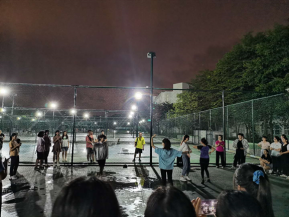 8.广场舞队每天晚上7点到9点在教学区网球场开展训练