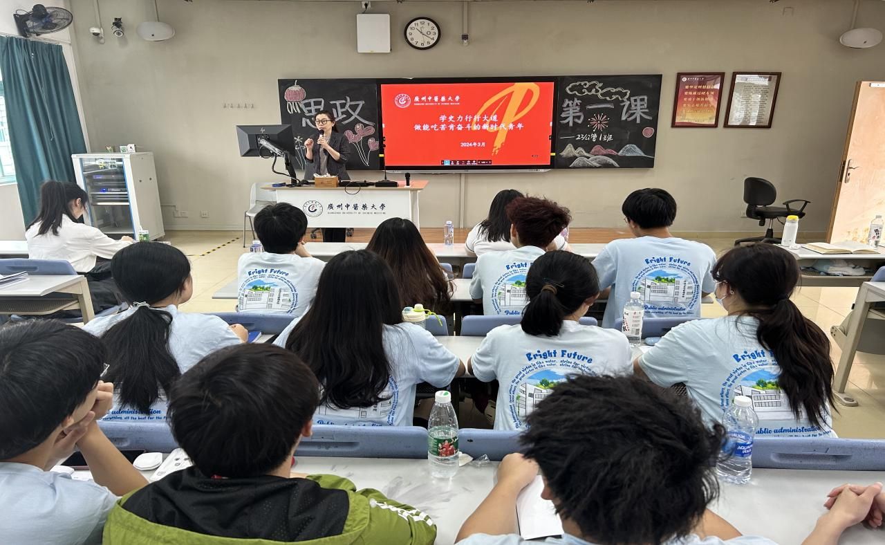 3月27日上午,公共卫生与管理公司党委书记赵力以“学史力行行大道,做能吃苦肯奋斗的新时代青年”为题在大学城校区A511教室为2023级公共事业管理专业1班同学们上新学期“思政第一课”。