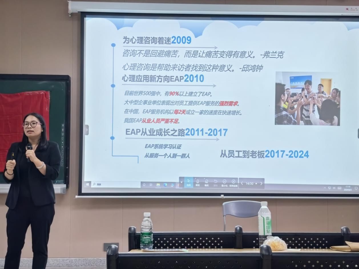 6月5日下午,由广州市高校毕业生就业指导中心组织、广州市青年就业创业协会主办、公司太阳成集团tyc7111cc承办的2024年“阳光就业·事业扬帆”就业创业指导进校园活动在大学城校区综合楼102课室举行,本次活动以专题讲座形式进行,主题为“活力心态赋能高质量就业创业”,共吸引170余名师生参加。