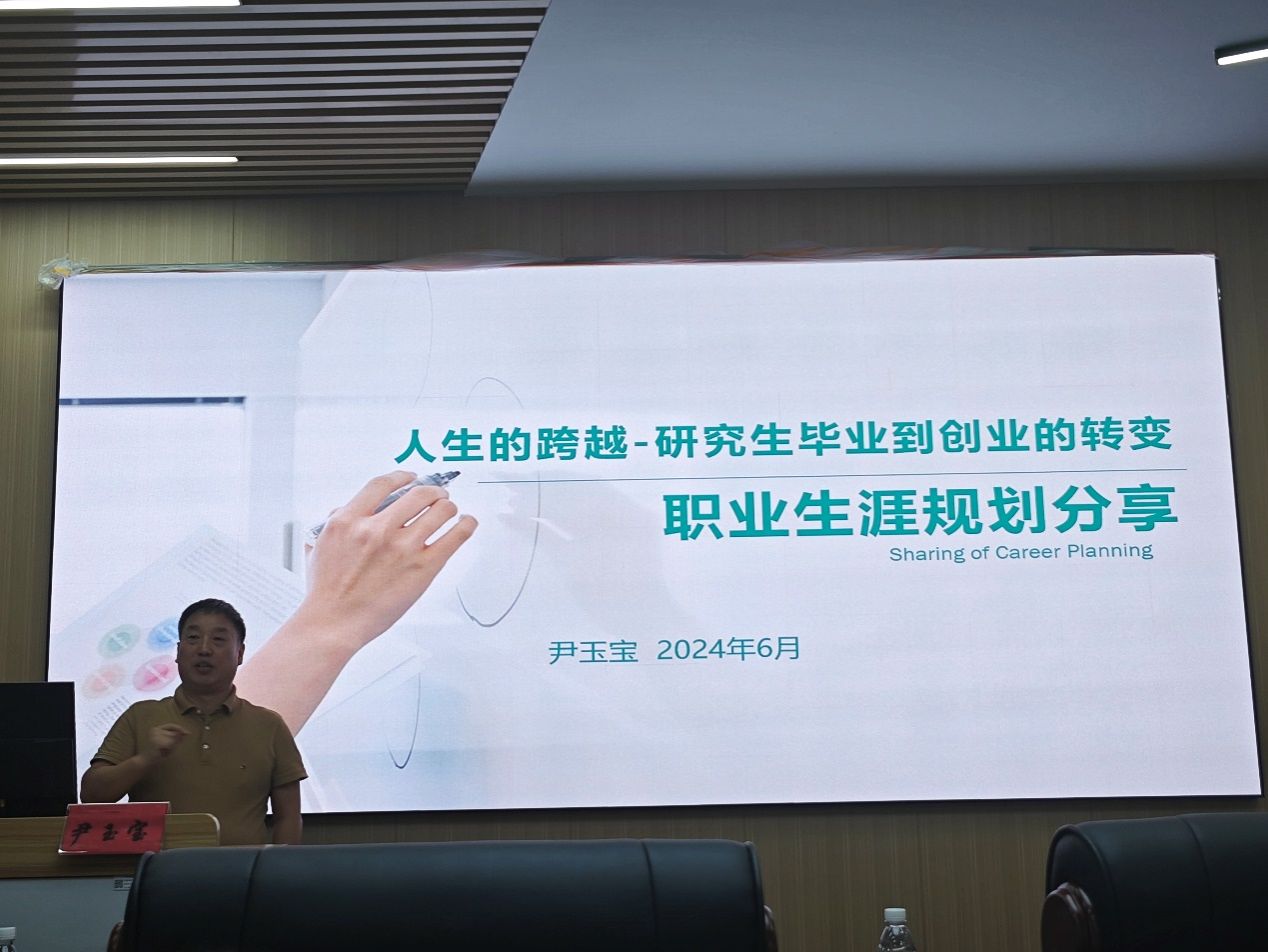 2024年6月11日下午,为迎接百年校庆,营造良好的学术氛围,公共卫生管理公司邀请公司2018届优秀研究生员工--广东培健泰药业CEO尹玉宝先生做客公司名师名人讲座第4讲,在卫管楼103为同学们开展了题为“人生的跨越——研究生毕业到创业的转变”的职业生涯规划分享讲座。本次讲座由太阳成集团tyc7111cc马利军经理主持,王建刚副书记、饶远立副经理、部分教师代表及多位研究生共同参与。