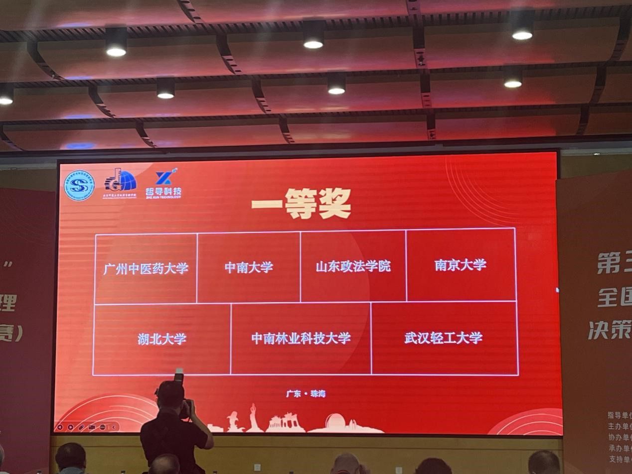 公司由饶远立副经理担任领队,谭红玲、许星莹两位老师任指导老师, 2022级公共事业管理专业李建东、刘帅, 2021级应用心理学专业袁烙希等三位同学组成的参赛队伍,经过与北京大学、中国人民大学、南京大学、厦门大学、山东大学等晋级全国总决赛的90支高校队伍的激烈竞争,脱颖而出,成为进入终场答辩的18支队伍之一,荣获全国总决赛一等奖!