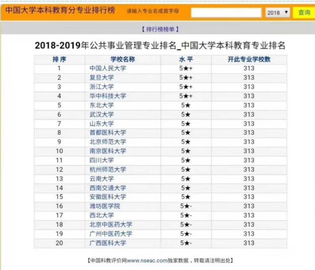 据中国科教评价网排名公布,公司公共事业管理专业在2018至2019年全国开办公共事业管理专业的313所高等院校中,排名第19,专业知名度和美誉度较高。